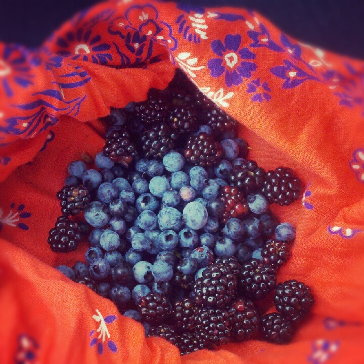 Sweetheart and I camped right along the extreme tidal flats up where Maine becomes Canada and the water rises and falls 25 feet with every hi-lo tide. We were in Cobscook Bay, “cobscook” being the Passamaquoddy tribal word for “boiling tides”. Part of the allure of our state park campsite was that at low tide “adventurous campers” (said the park literature) were permitted to go out into the expansive mud flats and get very dirty in the search for heretofore unknown to me softshell clams. Clams so fat and juicy and salty-sweet they can’t even close their shells all the way. We arrived just at low tide and ventured out to secure our dinners, while all the while the incredible fast and furious waters chased us back to land. We pulled a bounty, put them in fresh water to let them filter out their grit while we prepared the fire and tended to our sore fingers. When the coals were jewels, we banked and stoked and roasted the clams over the new open flames. Their salty juices hissed and spit, we melted butter in an enamel coffee cup by setting it at the edge of the fire, and spooned from the jar of cocktail sauce we picked up in Lubec (it was the easternmost cocktail sauce of the United States). Washed all down with dark brown beer it was a joyous supper indeed. And for dessert? The berries we had picked along the hiking trail that morning. It may seem simple to say, but it’s a certain city epiphany: how honest and good it feels to catch, pick, or harvest the food you eat yourself. To provide. When the fruits of your labors are actual fruits, foraged in the open, free in every sense.