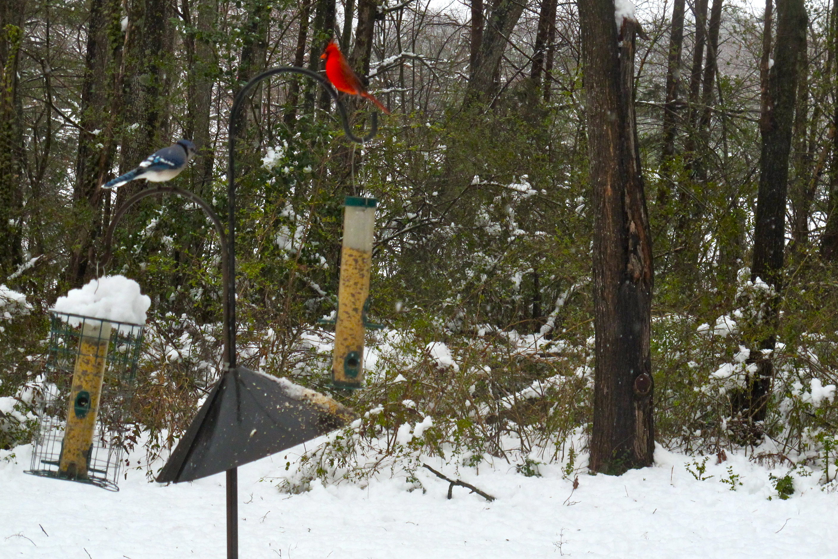 BigVASnowOh, hello and good morning! This is the view from my bed today. A little less than a foot, it seems, and the world is beautiful. We made sure to stock the birdfeeders before it all started so today we are being treated to a swooping ballet of snowbirds coming in for a breakfast. I simply can’t get over the Cardinal and the Jay.