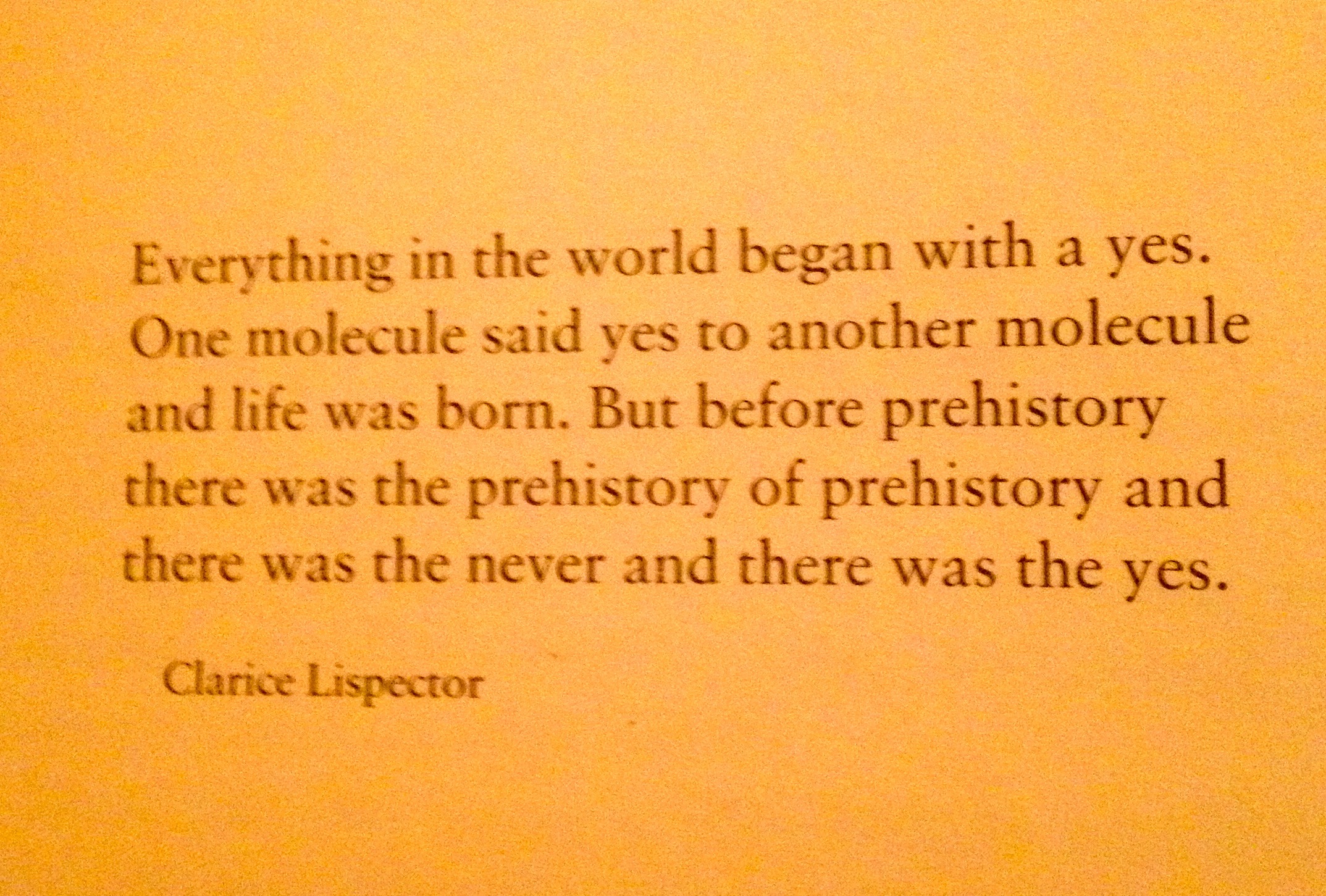 Everything in the world began with a yes. One molecule said yes to another molecule and life was born. But before prehistory there was a prehistory of prehistory and there was the never and there was the yes.