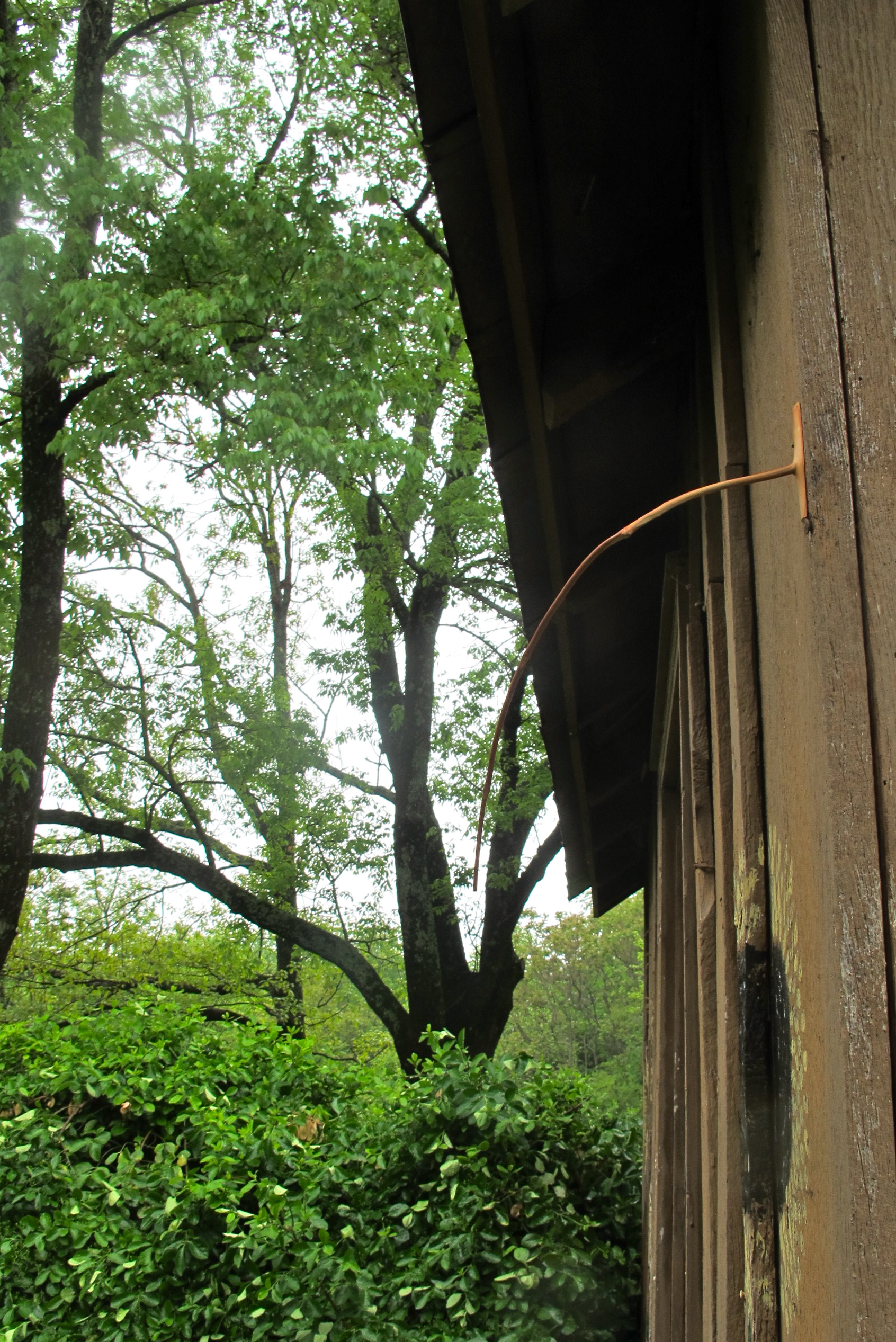 This little missive was followed by instructions to mount the stick outdoors, nail side up, under an eave or window frame, somewhere you can see it from inside. Now, Sweetheart’s Mama is an awesome lady. She saw this strange and ancient meteorological thang and thought “I know just the almanac-reading girl who would like a funny old fashioned item of use and beauty such as this”. She might not have realized, though, that the weather stick was a tiny call to action. In our sweet old Brooklyn brownstone basement we didn’t have an eave, our windows had bars, and the only thing we could see from inside was other people’s legs as they walked by on the sidewalk. Hardly a place for a natural barometer, hardly a place where the coming of rain means nothing much but a proliferation of guys selling cheap umbrellas outside of the belching mouths of the subways. So I’ve been carrying this stick around for, literally, years, it lived on the dashboard of my car for a while (a wanderlust call to arms) until I finally hung it last week. Outdoors, nail side up, under the eave of the shed with the sunflowers painted on it, where I can see it from inside. And this morning, as it is quiet and grayly raining, it points down. And tomorrow, when the sun will shine, it will point up. Just as it should.