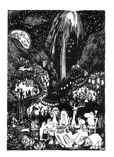 In New York, the literal distance between friends- the few blocks separating a single neighborhood- can be the difference between weekly wine dates and once-a-year-in-review catch ups. You live in Cobble Hill? Are you free next September? You live in Clinton Hill? Come over for cocktails this very minute. Le sigh. It can be daunting. BUT- after much karma, zen real estate, and wise choices in love and loft we find ourselves with four very good households of friends all living within a five minute walk of each other. This seems a New York miracle. Yes, Virginia, Brooklyn sometimes feels like Virginia. Ever since I read this post from Oh Happy Day!- a progressive dinner carousing from arrondissment to arrondissment through the streets of Paris- I’ve been dying to try it. A Progressive Dinner, in short, moves from house to house with each stop serving a different course of a meal. A Moveable Feast of Brooklyn intuition. I’m thinking that the whole shebang will probably look and feel like the above picture from Comet in Moominland– which Eben and I both read as children and made mental notes that we wanted our lives to be like this- as he agrees: so far so good. I’ll let you know how it goes. Cheers to good friends and a lovely weekend to you!