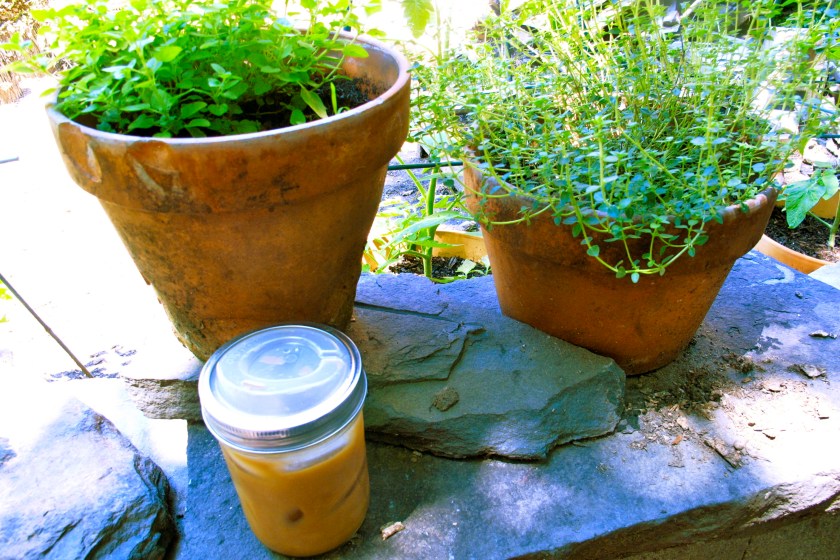 Today I took my first cup of cold brew coffee out to the backyard to survey our small domain and water our little container garden and I was positively struck with early summer wonder. First off: the simple joys of homemade cold brew are not to be taken lightly and it is ever-so-much more enjoyable than I thought possible to drink it with a cuppow mason jar top. Right now there is a ton of (fabulous-yet-frustrating) construction going on in the backyard as our awesome landlord Bernie and his yappy yorkie Zeus put up new fencing, plant big lovely boxwoods, lay down a patio, occasionally spar at our window with Nipsey the Cat, and make a big mess everywhere including in the cucumber pots. In the midst of the construction chaos, ground strewn with power tools and trash, our little garden is still thriving. Is this a New York parable? Our Early Girls are putting out their first little green maters, late breaking broccoli is rearing its head, zucchinis are blossoming, nasturtiums are up, all of the little hot peppers are putting forth blossoms (the big one already has two peppers on it!), the first strawberries are almost ready to eat, and all of the herbs are thriving. It’s always the little things that matter most.
