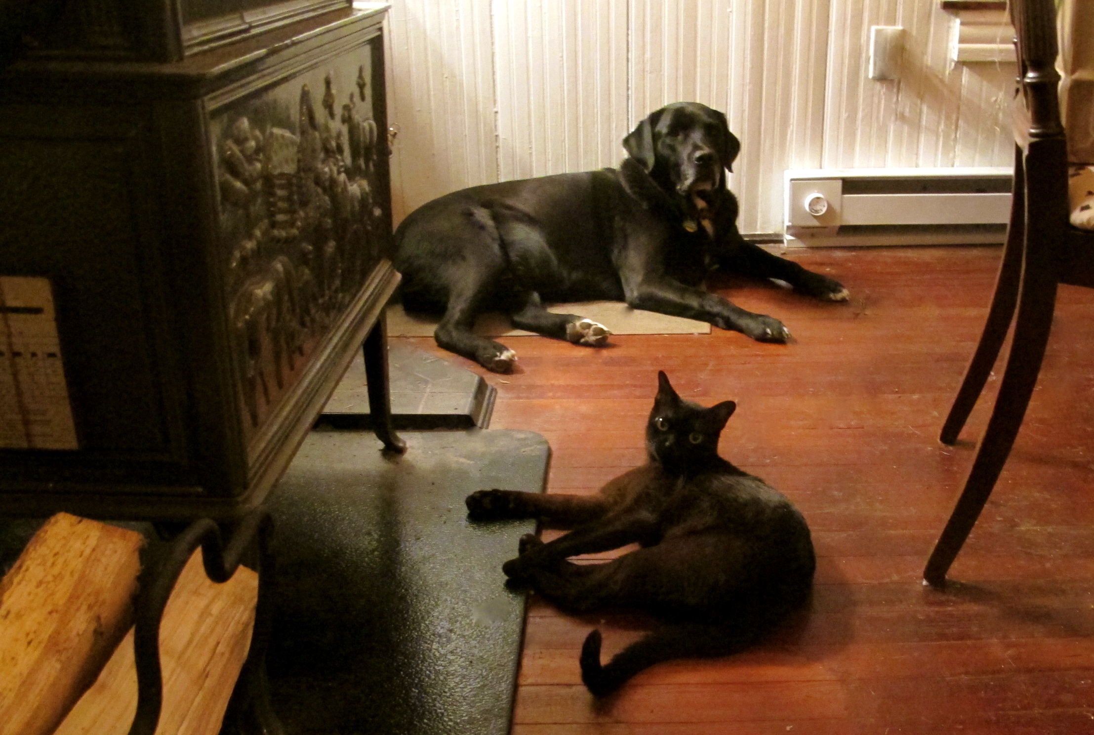 So, these sweet brown boys have been hanging out. Nipsey Russell, meet Mr. Samson. They both think that they’re human, so they’re constantly confused as to what the other guy thinks he’s doing hanging out. Still slightly skeptical of each other (and the existential crisis of whole cat/dog thing), one thing they both agree on: laying by the woodstove, as close as possible to our people is just about as good as it gets.