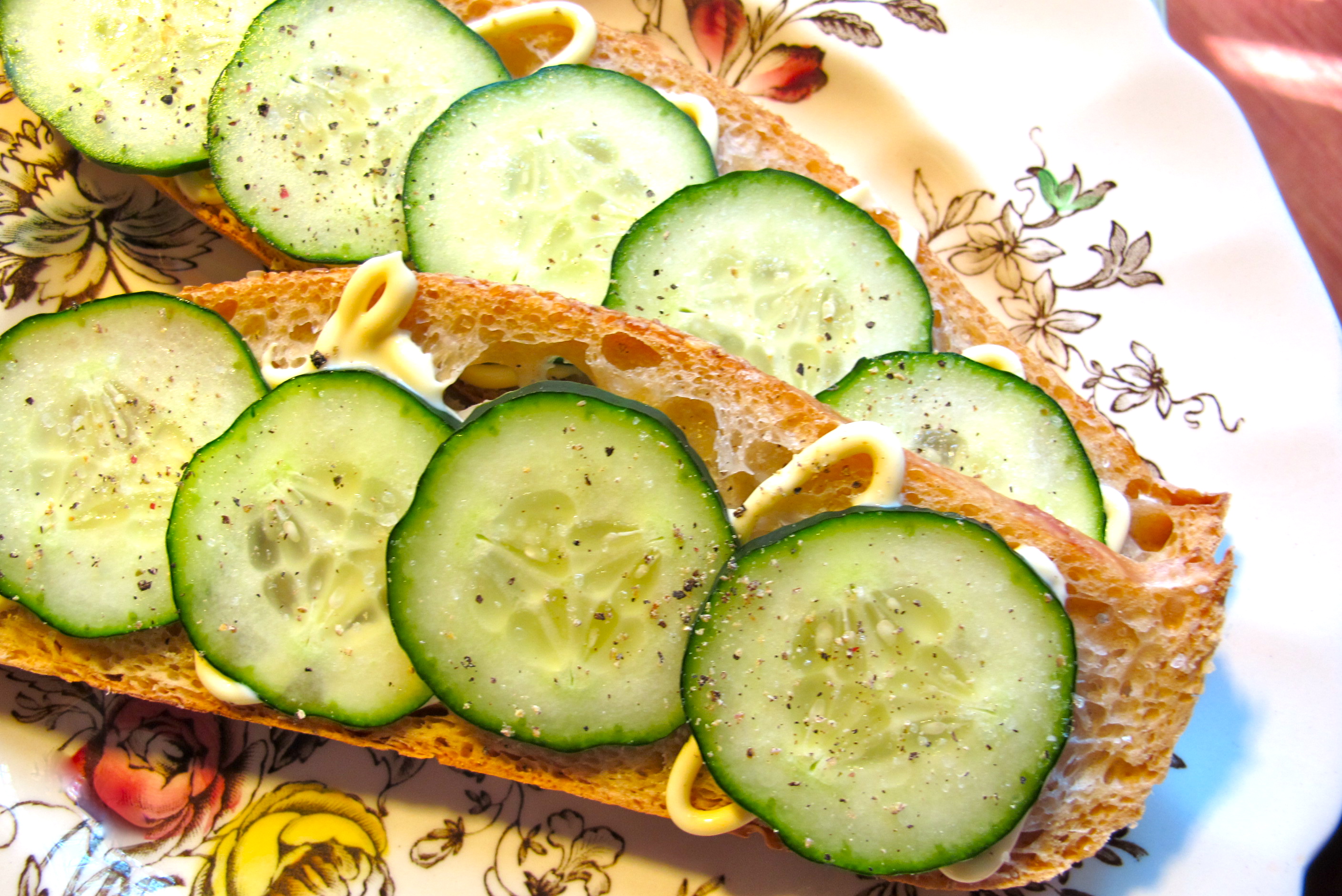 Under the right circumstances, nothing could be better than a cucumber sandwich. This version: open faced on homemade bread, kewpie mayonnaise, salt and pepper, perfection in simplicity.