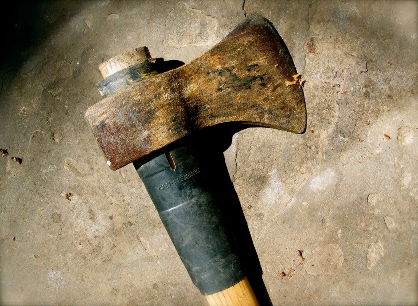 I broke it up myself using a rusty old axe I found in the backyard that must have belonged to the original landlords from the 1850’s. This is what my axe looks like: