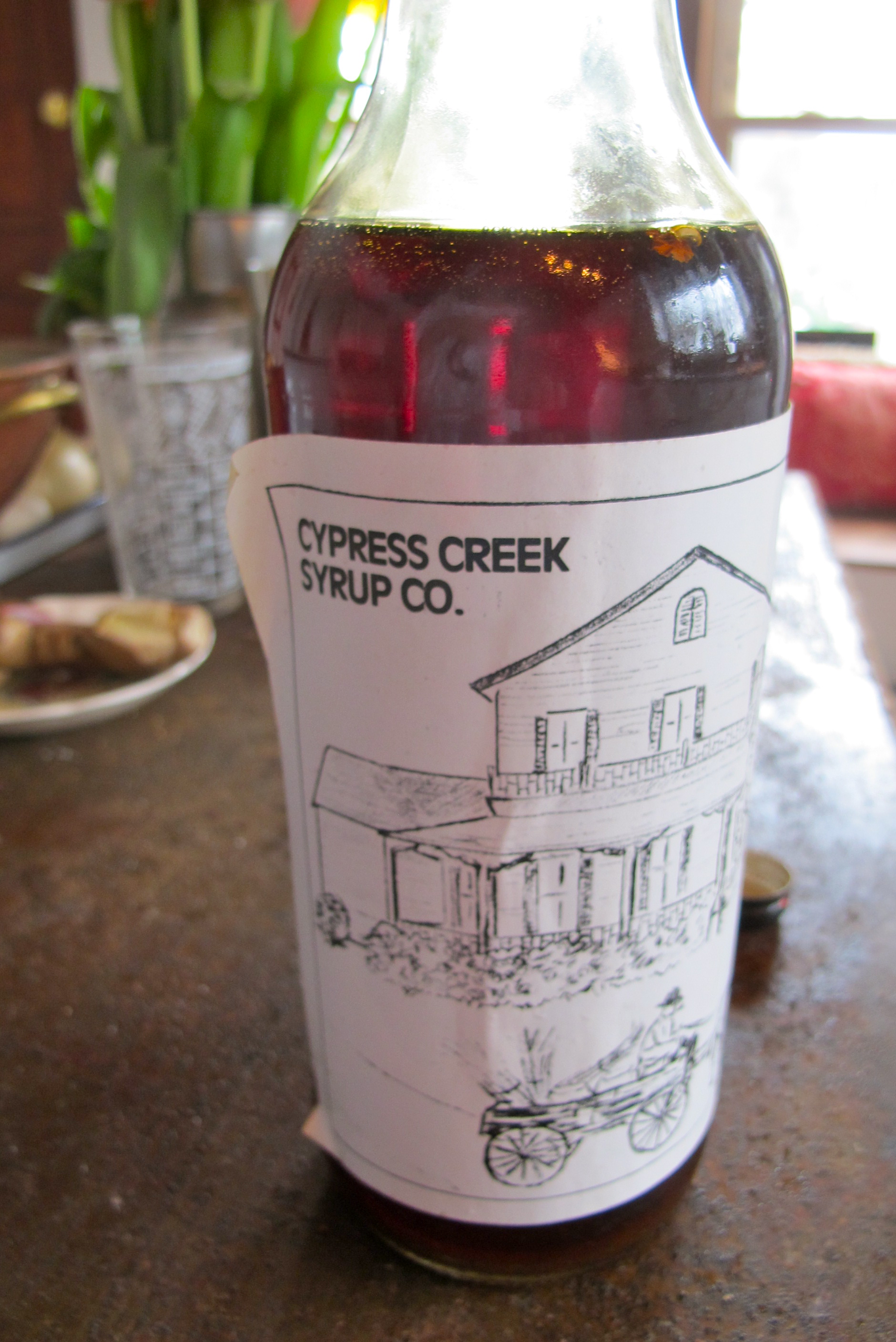 Secret Best Thing Ever: Cane Syrup from Ravenel’s family farm. Dark and sweet and funky in the rummy way of Molasses (which makes sense since this is what molasses is before it gets hot, boils down and goes rogue), but with the lightning quick pour of hot Aunt Jemima. Sugar Cane juiced by mules (named Molly and Weezer) in the ancient manner, bottled in an old Hurricane (with the label drawn by Rav’s dad) perfect on buckwheat cakes. Secret Best Thing Ever.