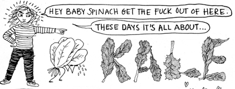 Quoting the amazing Anne Emond Ann Marie pointed to the kale and said “Hey, Baby Spinach get the F out of here” to which the FarmStandHand replied “I like the way you talk”. Anne Emond’s comique, in addition to being awesome, is also an exact likeness (down to the black pants and striped shirt) of Ann Marie when she said it: